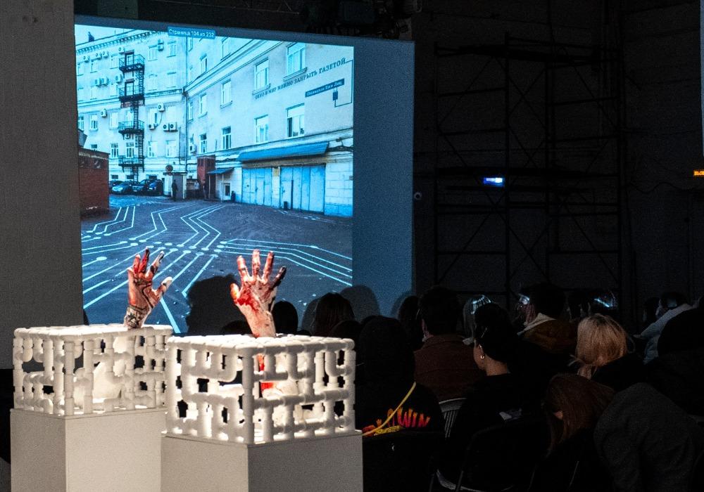 Встреча прошла непосредственно в арт-пространстве, что усилило образовательный эффект. «Запертые чувства» превратили выставочный зал в 700-метровую квартиру, заполненную картинами и инсталляциями периода тотальной изоляции весны 2020 года.