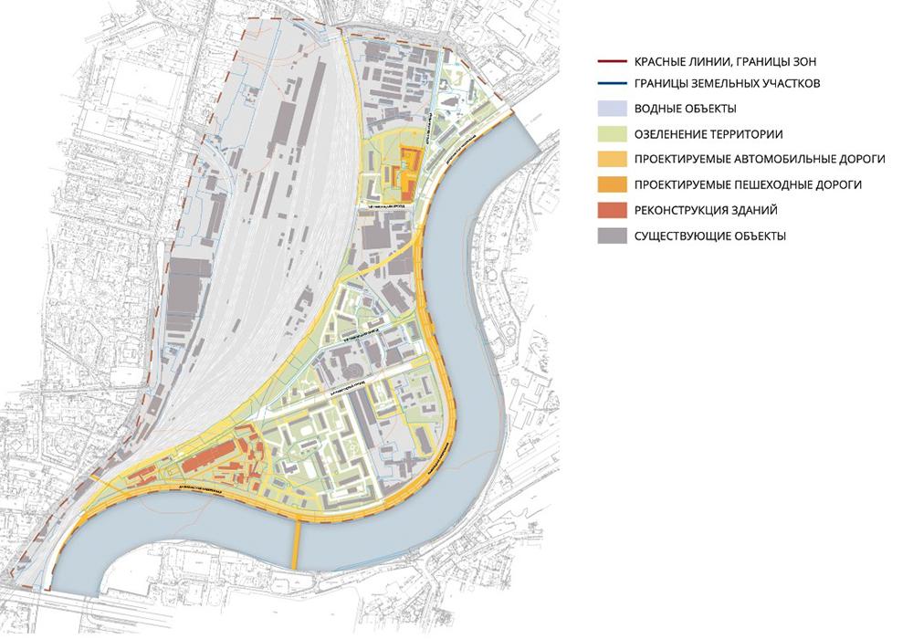 Проектируемая территория расположена в Даниловском районе Москвы между метро Тульская и Автозаводская и относится к Южному административному округу. Охватывает Даниловскую, Дербеневскую и Павелецкую набережные. Главная задача проекта — сделать индустриальность отличительной чертой района с помощью соответсвующих малых архитектурных форм. А также освободить набережную Москвы-реки от восьмиполосной автомобильной дороги и сделать её пешеходной. Для этого было решено перенести дорогу вдоль железнодорожных путей и вывести её с помощью эстакады обратно на Дербеневскую набережную. Для благоустройства выбрано две территории. Первая на месте снесённого Московского дрожжевого завода, а вторая на месте закрытого Даниловского машиностроительного завода. Ветхая застройка снесена, а исторические здания подлежат реставрации и создании там коворкинга, зон ретейла, общепита и помещений для аренды. Освобожденная от автомобильной дороги набережная, соединяет две новые благоустроенные территории.