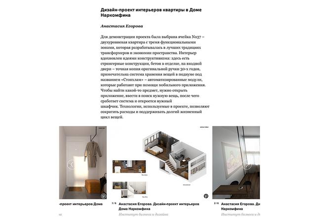 «Дизайн-проект интерьеров квартиры в Доме Наркомфина» – Анастасии Егоровой.