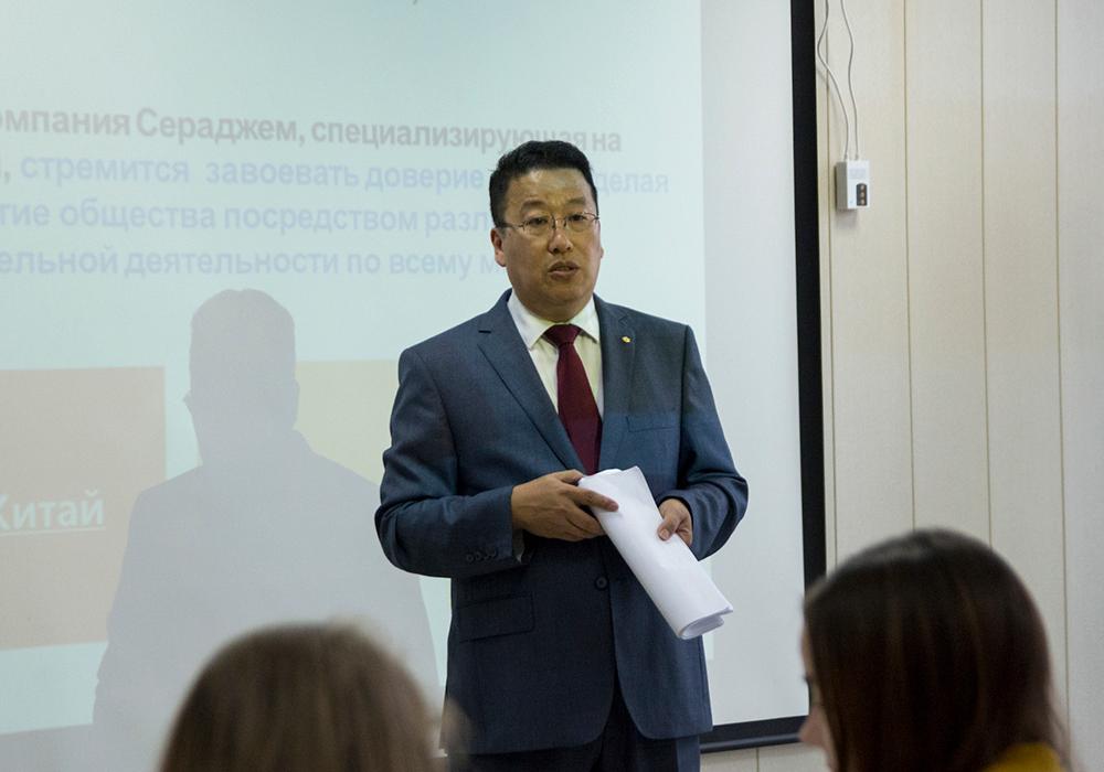 Он рассказал о международном южнокорейском холдинге, представленном в 75 странах, о миссии и ценностях компании, корпоративной социальной ответственности Сераджем и масштабной благотворительной деятельности, проводимой холдингом в разных странах, а также о других особенностях ведения бизнеса в Корее, которые позволяют многим компаниям становиться известными на весь мир (таким как Samsung, LG).