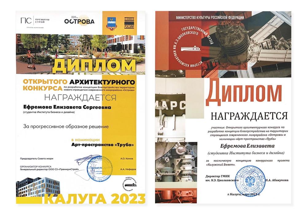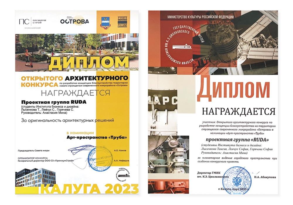 Проекты студентки 3 курса профиля «Архитектурная среда и дизайн» Елизаветы Ефремовой и проектной группы «RUDA» в составе Софьи Горячевой, Софьи Левчук, Таисии Лысенковой и преподавателя кафедры Анастасии Мины признаны лучшими по мнению Музея!