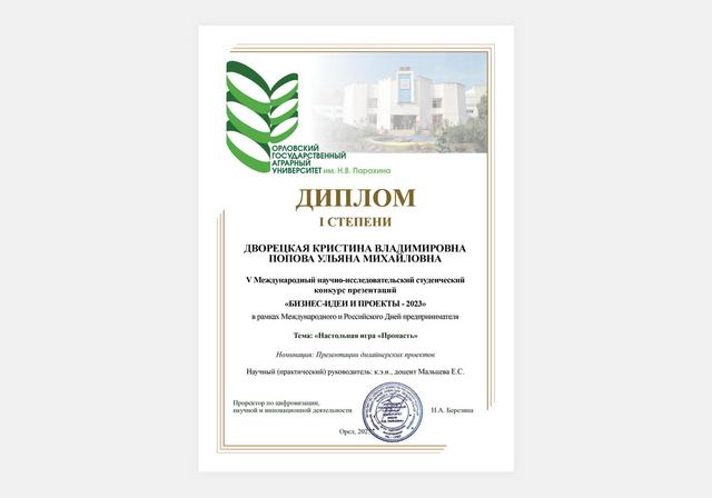 21 февраля в рамках Международного и Российского Дней предпринимателя в городе Орёл прошёл V Международный научно-исследовательский студенческий конкурс презентаций «Бизнес-идеи и проекты – 2023».