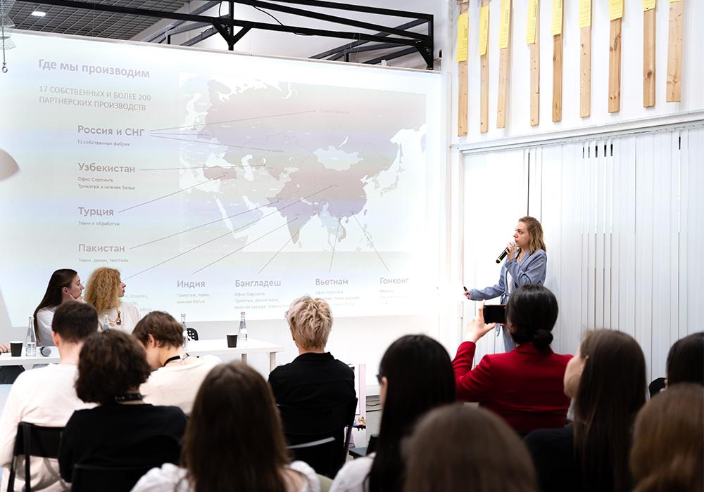 Встреча со студентами и выпускниками профиля «Дизайн костюма» прошла в форматах презентаций, свободных обсуждений тем с профессионалами GJ и кросс-интервью с HR-менеджером GJ на тему «Первые вопросы на собеседовании». После мероприятия все заинтересованные участники обсудили со спикерами реальные вакансии модного ритейла.