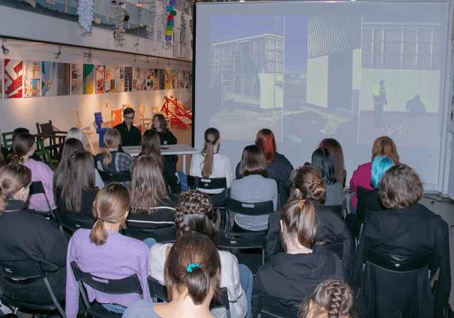 В рамках лекции спикеры рассказали о своих самых значимых проектах и реализациях бюро, познакомили студентов и гостей института со своим творческим кредо и обсудили с аудиторией ситуацию на архитектурно-проектном рынке в настоящее время.