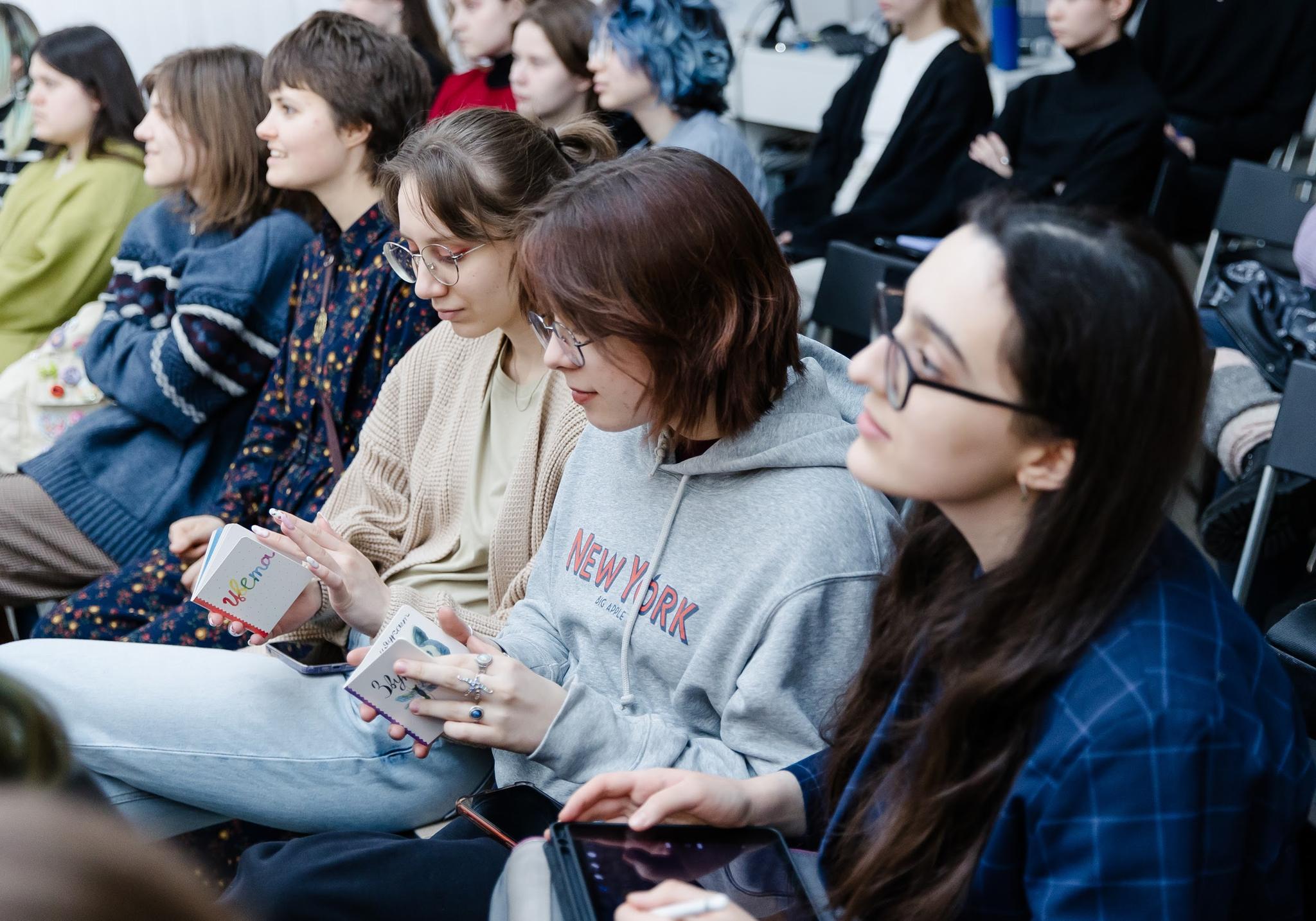 В рамках встречи спикер познакомила студентов со своим творчеством и на примере собственного опыта рассказала, в чем секрет успеха современного иллюстратора, как стать дизайнером-иллюстратором в известной компании, где в большом городе можно найти вдохновение и зачем начинающим иллюстраторам нужно публичное признание, а также поделилась секретами успеха: