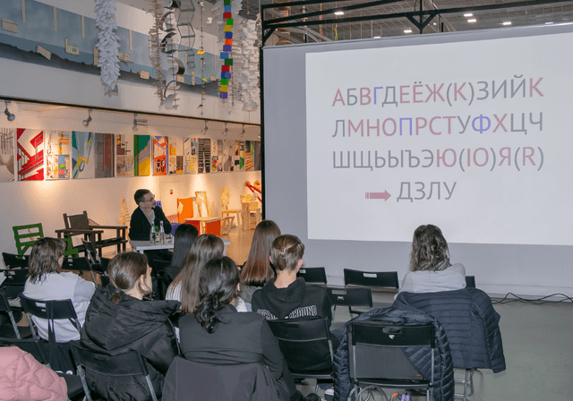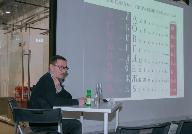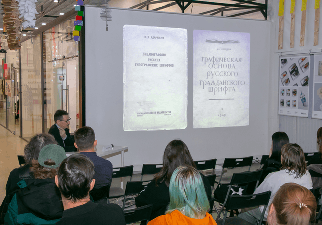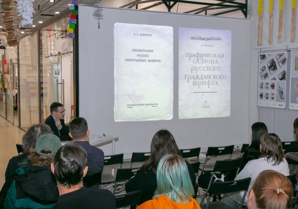В рамках лекции спикер рассказал о знаниях, их передаче и формировании посредством шрифта. Также эксперт продемонстрировал различные примеры шрифтов, чтобы объяснить, что шрифт – это не только очевидная, но и скрытая информация.