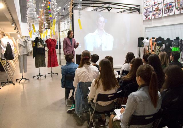Особенного внимания со стороны гостей конференции заслужили работы студентов 4-го курса. Свои будущие дипломные проекты они тоже посвятили киноискусству, выбрав киноклассику прошлых лет. В докладах студенты рассказали о творческом процессе создания проектов от идеи до воплощения, завершив выступление фотоотчётом с весенней Недели моды Mercedes-Benz Fashion Week Russia, где уже успели представить свои авторские коллекции.