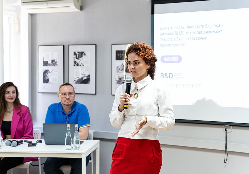 16 мая Центр карьеры B&D организовал для студентов открытую дискуссию на тему «Работа в event: карьерные преимущества», спикерами которой стали генеральный директор event-агентства «Secret Point» Алексей Шаталов и четверокурсница профиля «Менеджмент в дизайн-бизнесе» Юлия Асадова, работающая уже более двух лет частным event-менеджером.