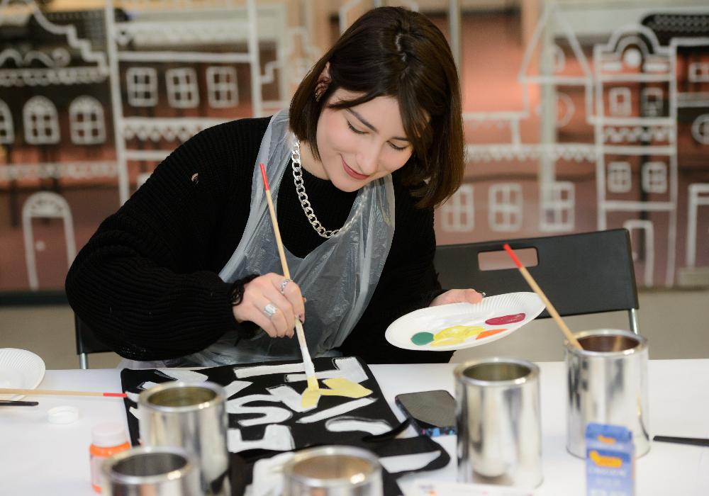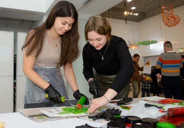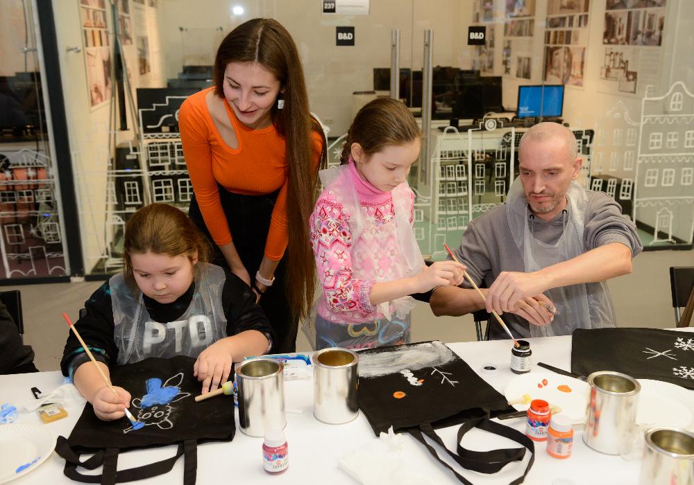 Также каждый желающий мог посетить мастер-классы по росписи холщовых сумок (шопперов), созданию новогодних открыток с помощью конгревного тиснения, трафаретной печати или леттеринга.