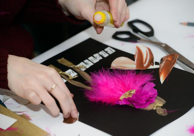 В рамках мастер-класса по скетчингу (созданию быстрых набросков) от Юлии Третьяковой преподавателя дисциплин «Академический рисунок», «Академическая живопись», «Специальный рисунок» B&D, посетители познакомились с «мягкими» материалами и техникой коллажа, сделали первые шаги в данном художественном направлении, получили базовое поминание основ рисования фигуры человека и создали стильные открытки из журнальных вырезок и подручных материалов.