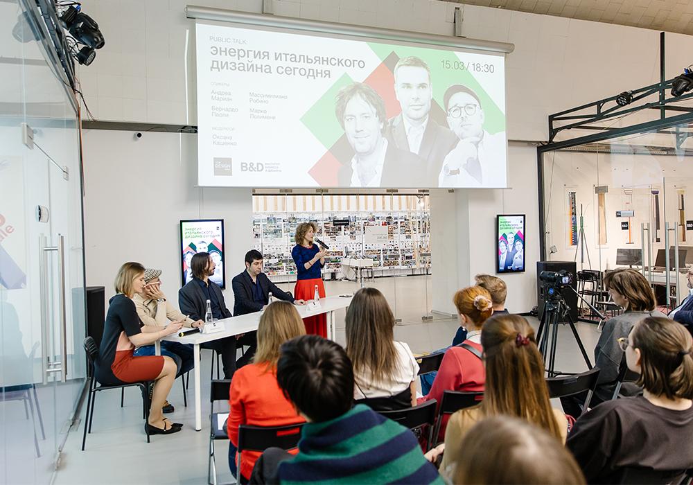 15 марта Институт бизнеса и дизайна B&D при поддержке журнала Top Design Magazine провел День итальянского дизайна, который объединил в своей программе public talk c участием итальянских и российских экспертов, выставки работ современных художников Кирилла Рубцова и Массимилиано Робино, а также показ студенческих проектов – аналитическое исследование Миланского мебельного салона, костюмы, вдохновлённые Италией, работы победителей конкурса «Кино по-итальянски».