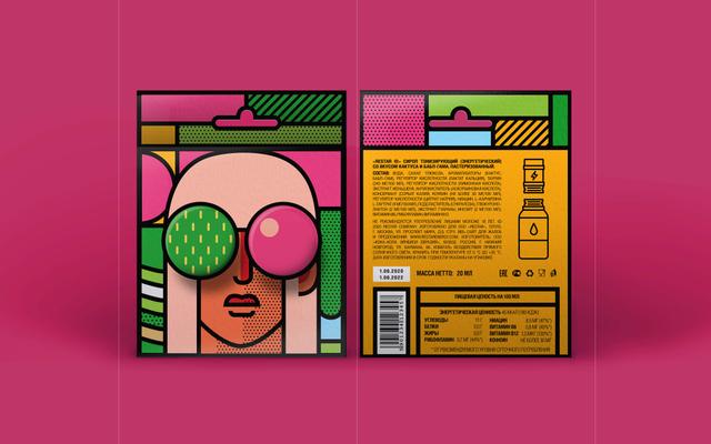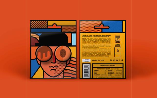 Новая упаковка продукта представляет собой капсулу с концентрированным энергетическим сиропом, который нужно смешать с газированной водой. Поэтому капсула работает как насадка на бутылку. Всё, что нужно сделать — это накрутить капсулу на горлышко, а когда сироп смешается с водой открыть верхнюю крышку. Идея основного дизайна картонной упаковки — сегментирование вкуса и внешнего образа продукта в соответствии с музыкальным жанром, который презентует избранный исполнитель, известный музыкальным фанатам.