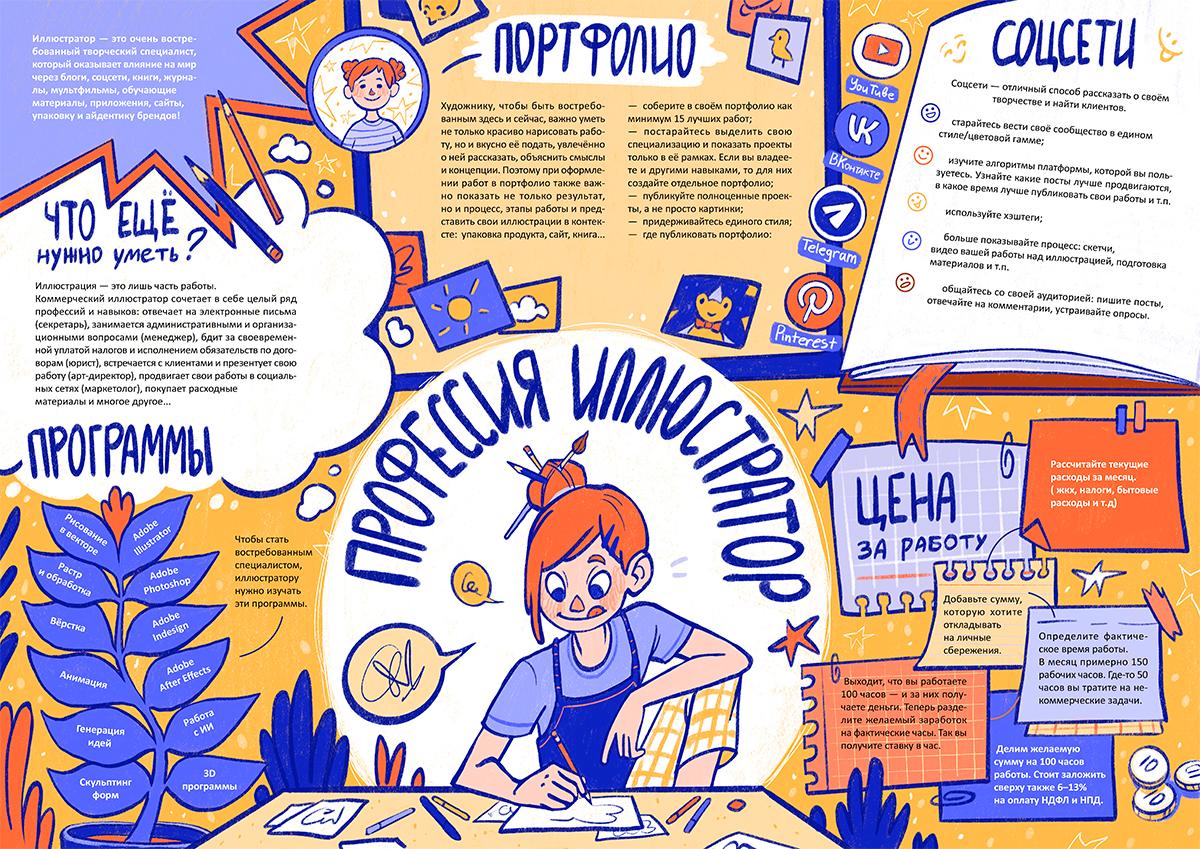 Выпускник профиля «Иллюстрация» сможет применить полученные профессиональные навыки в книжных, журнальных и веб-изданиях, в создании элементов айдентики и рекламы, в мультимедийных проектах и компьютерных играх.